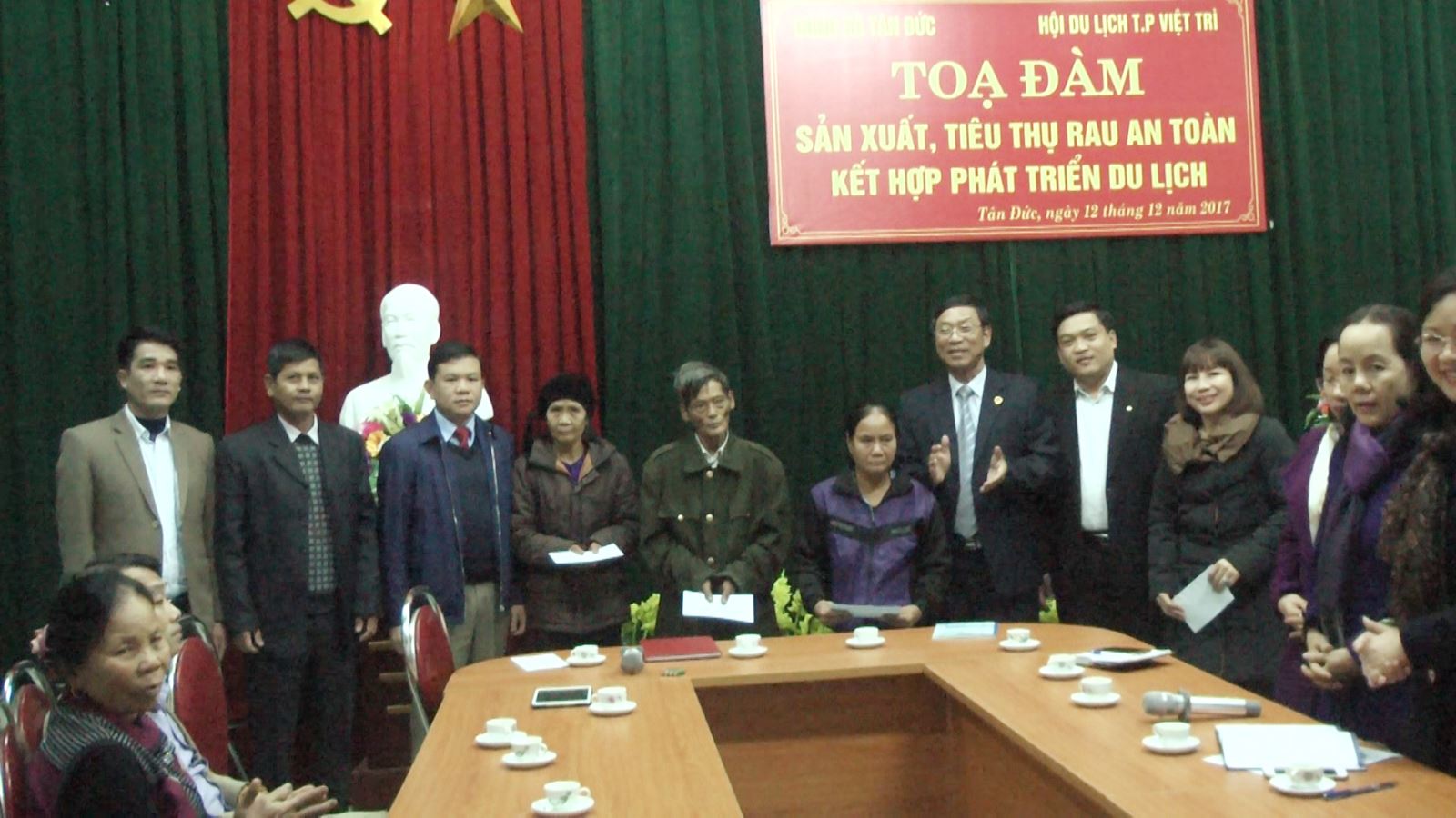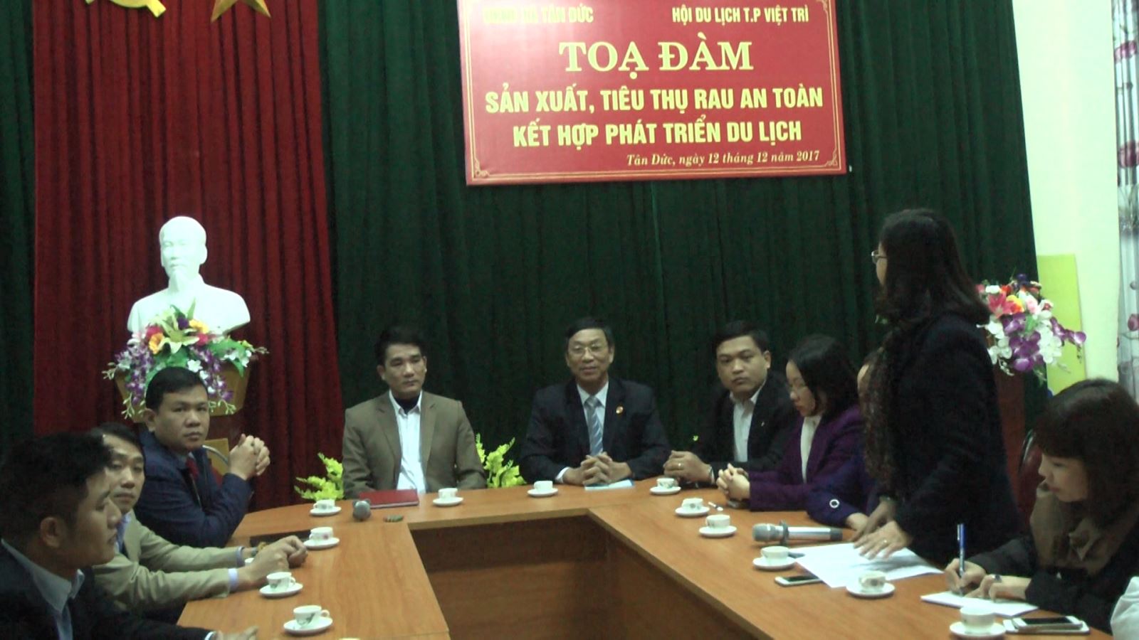 Tại buổi tọa đàm, đại diện xã Tân Đức đã thông báo khái quát tình hình kinh tế- xã hội địa phương, trong đó tập trung vào những lợi thế về đất đai và bãi nổi ven sông trong việc canh tác rau an toàn và mở ra hướng phát triển du lịch trải nghiệm, sinh thái. Ngay sau đó, các đại biểu là các chủ nhà hàng, khách sạn và công ty lữ hành thuộc Hội du lịch thành phố Việt Trì đã đưa ra nhiều ý kiến thiết thực cho việc sản xuất và tiêu thụ rau an toàn xã Tân Đức tại các nhà hàng, khách sạn cũng như những bếp ăn tập thể trên địa bàn thành phố. Đồng thời, các đại biểu cũng đã cùng đại diện cấp ủy, chính quyền xã đưa ra những gợi ý để xây dựng cảnh quan, tạo điểm đến cho du khách khi đến với các tour du lịch trên địa bàn thành phố Việt Trì.