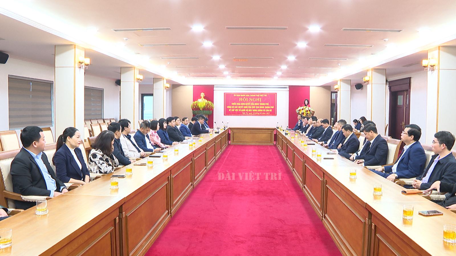 Tại hội nghị, lãnh đạo Thành phố đã công bố các quyết định về việc thành lập và bổ nhiệm cán bộ lãnh đạo đối với các cơ quan chuyên môn. Cụ thể, thành lập Phòng Nông nghiệp và Môi trường trên cơ sở tiếp nhận chức năng nhiệm vụ, chức năng quản lý của Phòng Tài nguyên và Môi trường với Phòng Kinh tế; Phòng Lao động – Thương binh và xã hội; Thành lập Phòng Kinh tế, Hạ tầng và Đô thị trên cơ sở tiếp nhận chức năng, nhiệm vụ của Phòng Quản lý đô thị và Phòng Kinh tế; Thành lập Phòng Văn hóa, Khoa học và Thông tin trên cơ sở tiếp nhận chức năng, nhiệm vụ của Phòng Văn hóa – Thông tin và Phòng Kinh tế; Thành lập Phòng Nội vụ trên cơ sở hợp nhất Phòng Lao động – Thương binh và xã hội và Phòng Nội vụ; Thành lập Trung tâm Văn hóa truyền thông trên cơ sở hợp nhất Đài Truyền thanh – truyền hình thành phố và Trung tâm Văn hóa thể thao và Du lịch; Tổ chức lại Phòng y tế thành phố; Phòng Giáo dục và Đào tạo thành phố. Sau khi thực hiện sắp xếp, tinh gọn số lượng các cơ quan chuyên môn của Thành phố từ 12 xuống còn 10 phòng chuyên môn.
