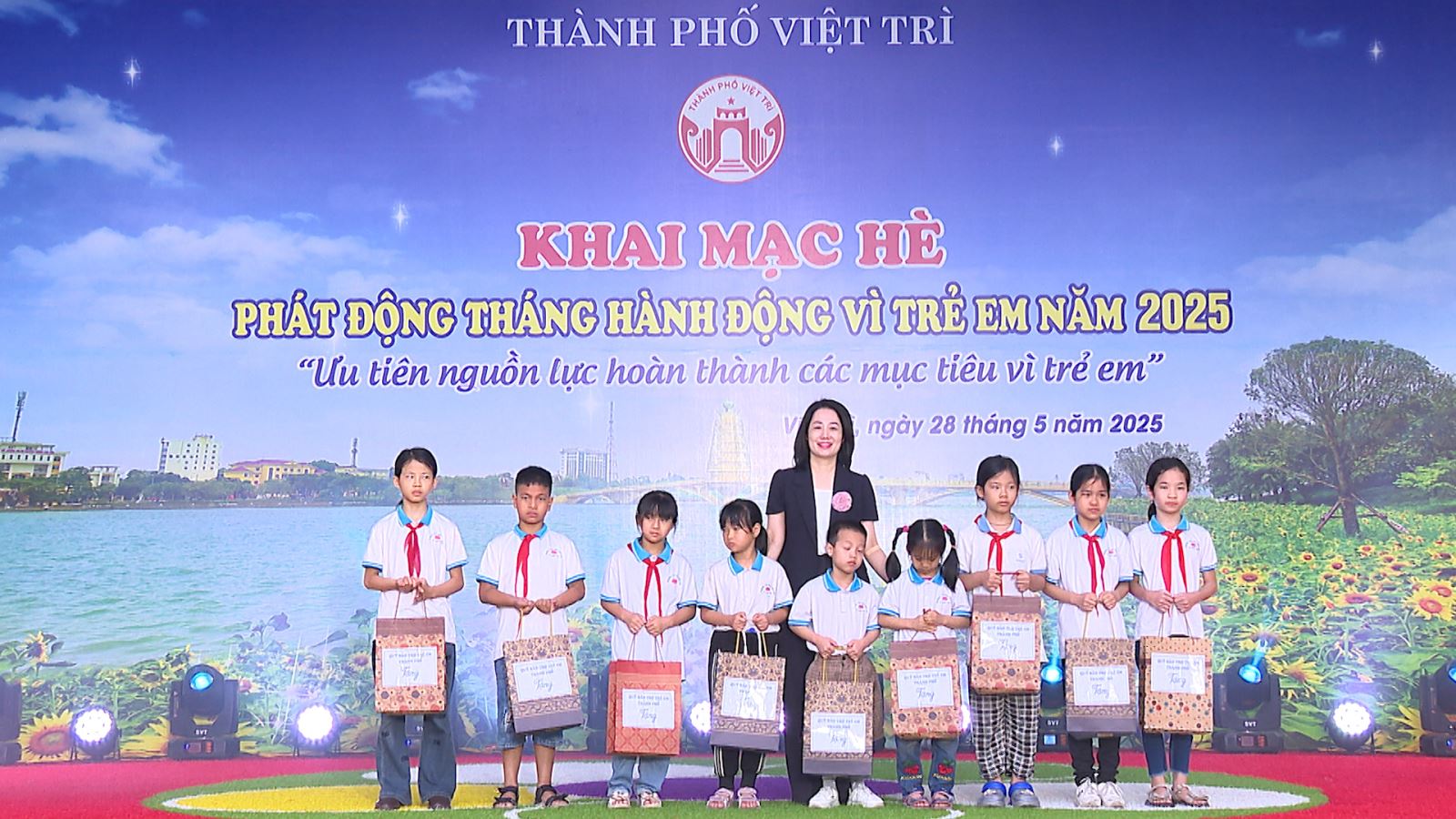 Nhân dịp này, Quỹ Bảo trợ trẻ em thành phố Việt Trì đã trao 50 suất quà, tổng trị giá 30 triệu đồng cho 50 em thiếu nhi vượt khó học tốt trên địa bàn thành phố./.