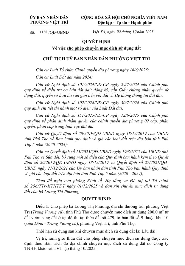 Thông báo: Công bố, công khai Kế hoạch sử dụng đất năm 2023 thành phố Việt Trì, tỉnh Phú Thọ