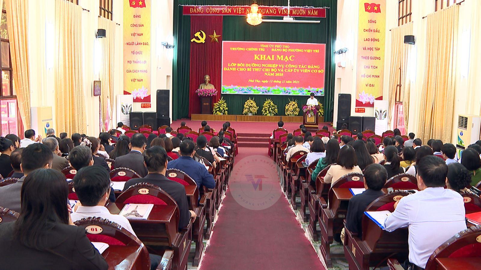 Sáng 12/11, Trường Chính trị tỉnh phối hợp với Đảng ủy phường Việt Trì tổ chức khai giảng lớp bồi dưỡng nghiệp vụ công tác Đảng dành cho các đồng chí là Bí thư, Phó Bí thư chi bộ và cấp ủy viên cơ sở trực thuộc Đảng bộ phường Việt Trì, khóa I năm...