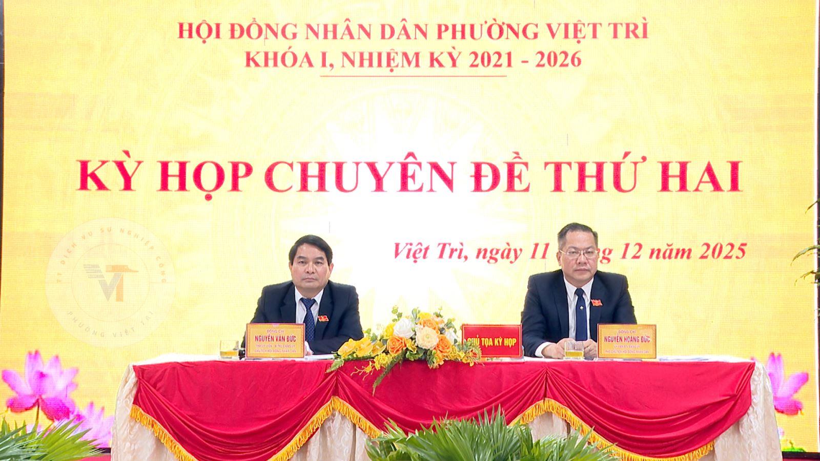Ngày 11/12, HĐND Phường Việt Trì đã tổ chức kỳ họp chuyên đề thứ Hai HĐND phường khóa I, nhiệm kỳ 2021 - 2026. Đồng chí Nguyễn Văn Đức - Tỉnh ủy viên, Bí thư Đảng ủy; Chủ tịch HĐND phường; Nguyễn Hoàng Đức - Phó Chủ tịch HĐND phường đồng chủ trì kỳ họp.