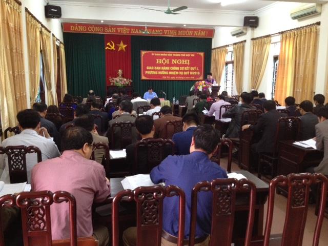 UBND thành phố vừa tổ chức hội nghị giao ban hành chính sơ kết quý I, phương hướng nhiệm vụ quý II/2016. Đồng chí Lê Hồng Vân- Tỉnh ủy viên, Phó Bí thư Thành ủy, Chủ tịch UBND thành phố chủ trì hội nghị.