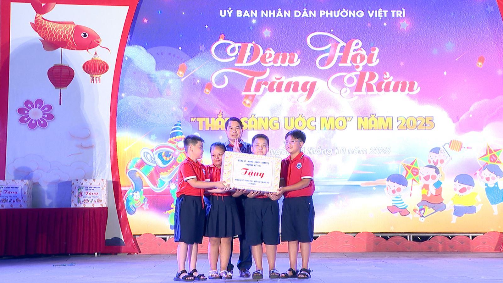 Tối 04/10, tại sân khấu Công viên Văn Lang, UBND phường Việt Trì đã tổ chức Tết Trung thu năm 2025 cho thiếu niên, nhi đồng với chủ đề Đêm hội trăng rằm “Thắp sáng ước mơ”