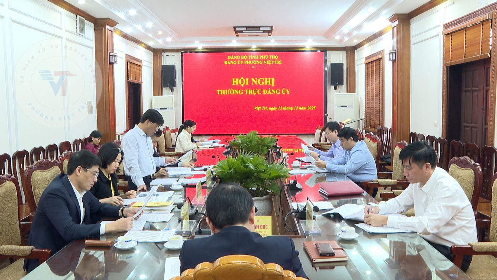 Ngày 12/12, Đảng ủy phường Việt Trì tổ chức hội nghị thường trực, nghe báo cáo một số nội dung quan trọng. Đồng chí Nguyễn Văn Đức - Tỉnh ủy viên, Bí thư Đảng ủy, Chủ tịch HĐND phường chủ trì hội nghị.