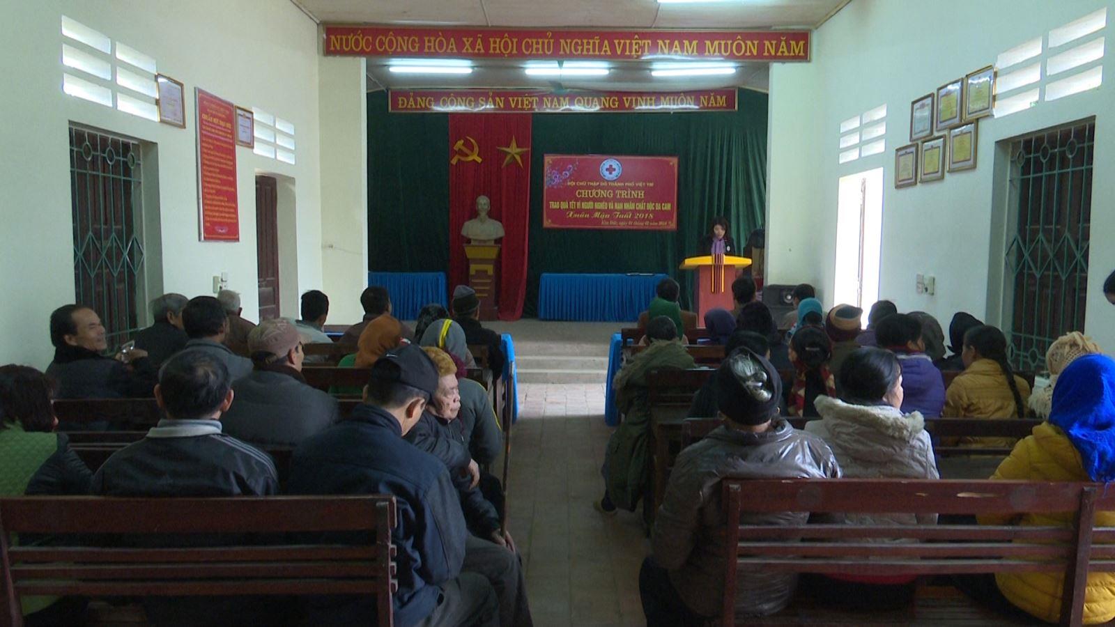 Hội chữ thập đỏ thành phố tặng quà tết cho các gia đình khó khăn và nạn nhân da cam xã Kim Đức
