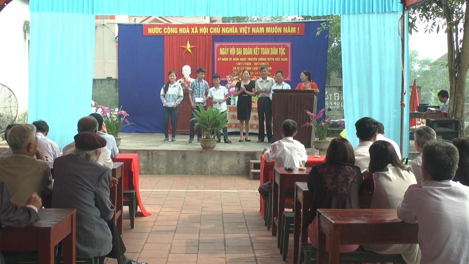 Nhân kỷ niệm 87 năm Ngày thành lập Mặt trận Dân tộc Thống nhất Việt Nam (18/11/1930 - 18/11/2017) và Ngày Pháp luật Việt Nam 9/11, ngày 12/11, khu dân cư 3B- xã Chu Hóa đã tổ chức “Ngày hội Đại đoàn kết toàn dân tộc”. Đồng chí Nhạc Văn Tiến- Phó...