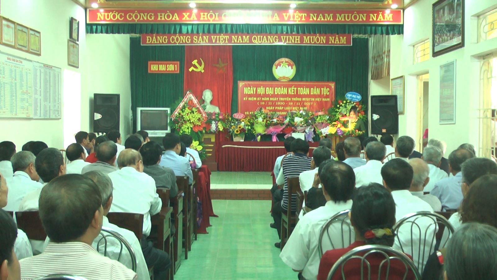 Trong không khí cả nước hướng về ngày hội đại đoàn kết toàn dân tộc, chiều 12/11, khu phố Mai Sơn 1, phường Tiên Cát đã tổ chức Lễ kỷ niệm 87 năm Ngày truyền thống MTDT thống nhất Việt Nam. Tới dự chung vui có các đồng chí: Vi Trọng Lễ - UV BTV...