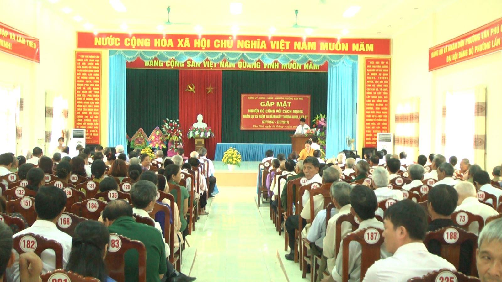 Tri ân công lao các anh hùng, liệt sỹ và gia đình cách mạng, phường Vân Phú vừa tổ chức buổi gặp mặt người có công trên địa bàn. Tới dự có đồng chí Phạm Thị Thu Hương – UV BTV thành ủy, Phó chủ tịch UBND thành phố; lãnh đạo một số phòng, bàn của thành phố.