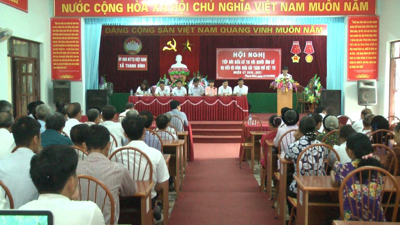 Ngày 12/5, thực hiện chương trình bầu cử HĐND các cấp nhiệm kỳ 2016- 2021, các ứng cử viên HĐND thành phố thuộc đơn vị bầu cử số 8 đã tiếp xúc với hơn 200 cử tri đại diện cho cử tri của đơn vị Thanh Đình và Chu Hóa.