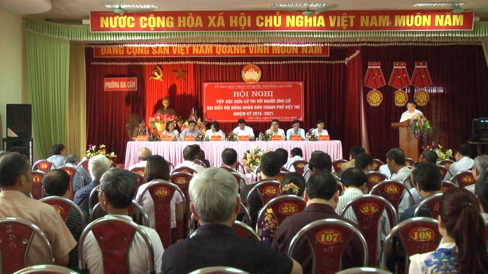 Ngày 11/5, tại UBND phường Gia Cẩm và Bến Gót, các ứng cử viên đại biểu HĐND tỉnh, khóa XVIII, nhiệm kỳ 2016-2021 thuộc đơn vị bầu cử số 1 đã có buổi tiếp xúc cử tri thành phố Việt Trì để thực hiện quyền vận động bầu cử .