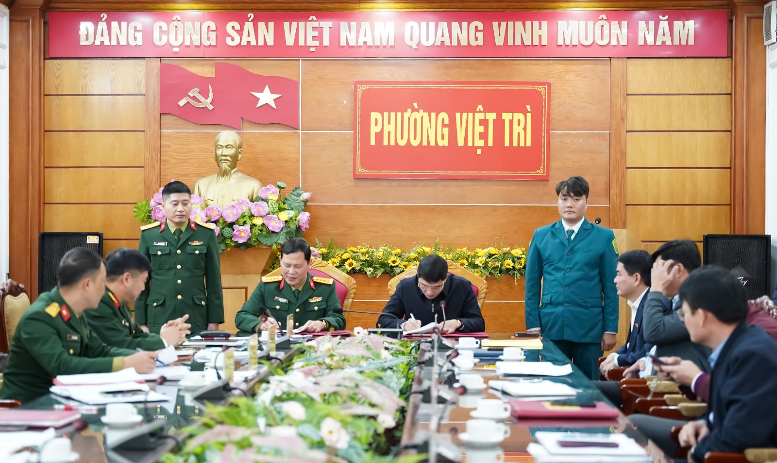 Tại hội nghị, đồng chí Nguyễn Đức Trung – UV BTV Đảng ủy, Trưởng Ban xây dựng Đảng đã công bố Quyết định bổ nhiệm Trung tá Vũ Hoàng Quân nhận chức vụ Chỉ huy trưởng Ban CHQS phường Việt Trì. Đồng chí Bùi Huy Hoàng – Nguyên Chỉ huy trưởng Ban CHQS phường đã thông qua biên bản bàn giao các nội dung gồm: Chức trách nhiệm vụ; Các hệ thống văn kiện; Tổ chức xây dựng lực lượng; Huấn luyện sẵn sàng chiến đấu; Về giáo dục QPAN; Về hoạt động, phương hướng nhiệm vụ tiếp theo.
