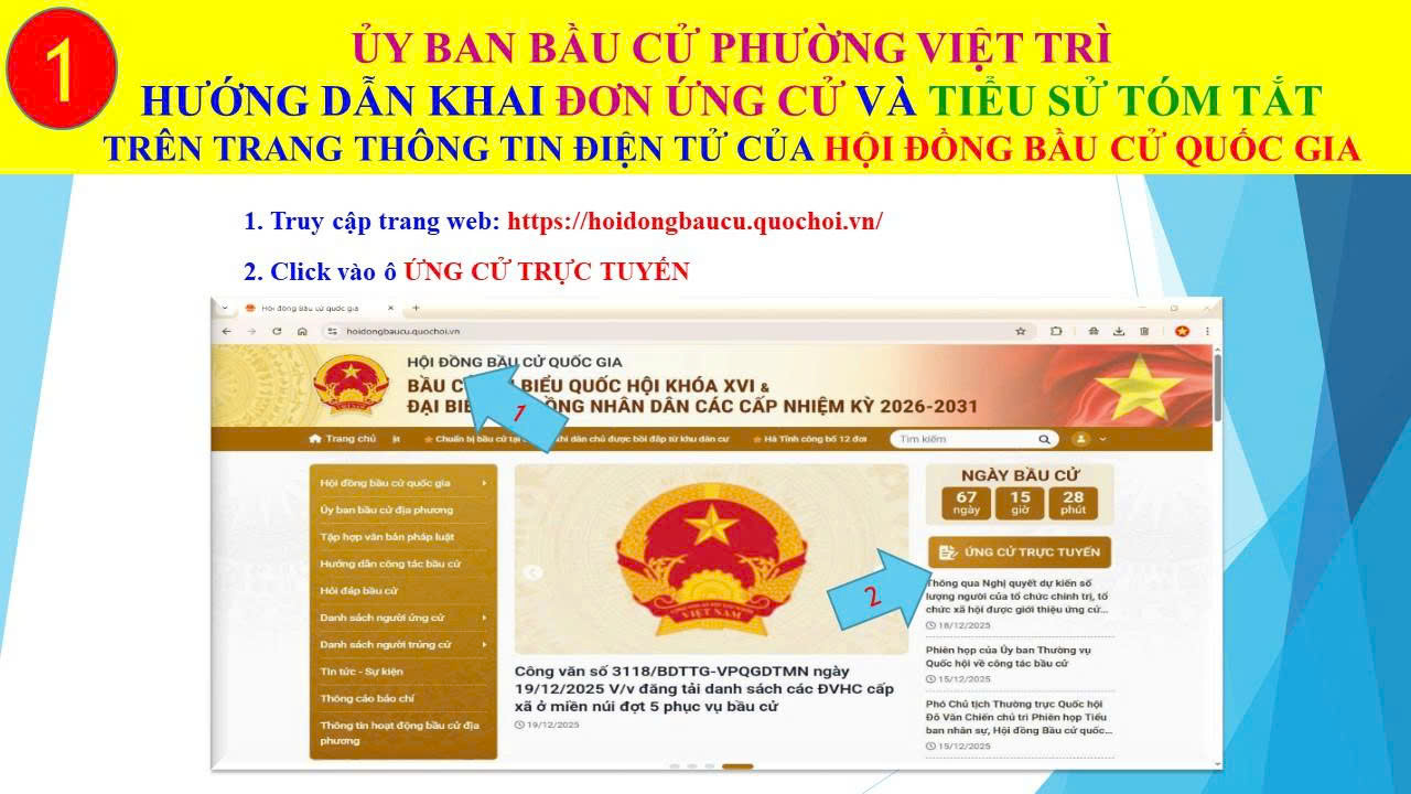 Hướng dẫn khai đơn ứng cử và tiểu sử tóm tắt trên Trang Thông tin điện tử của Hội đồng bầu cử Quốc gia
