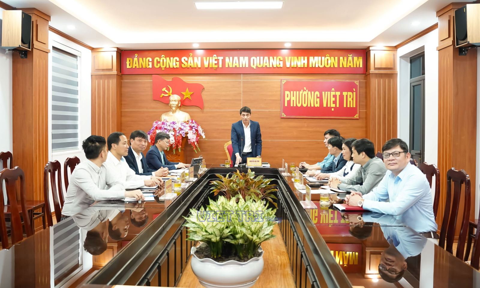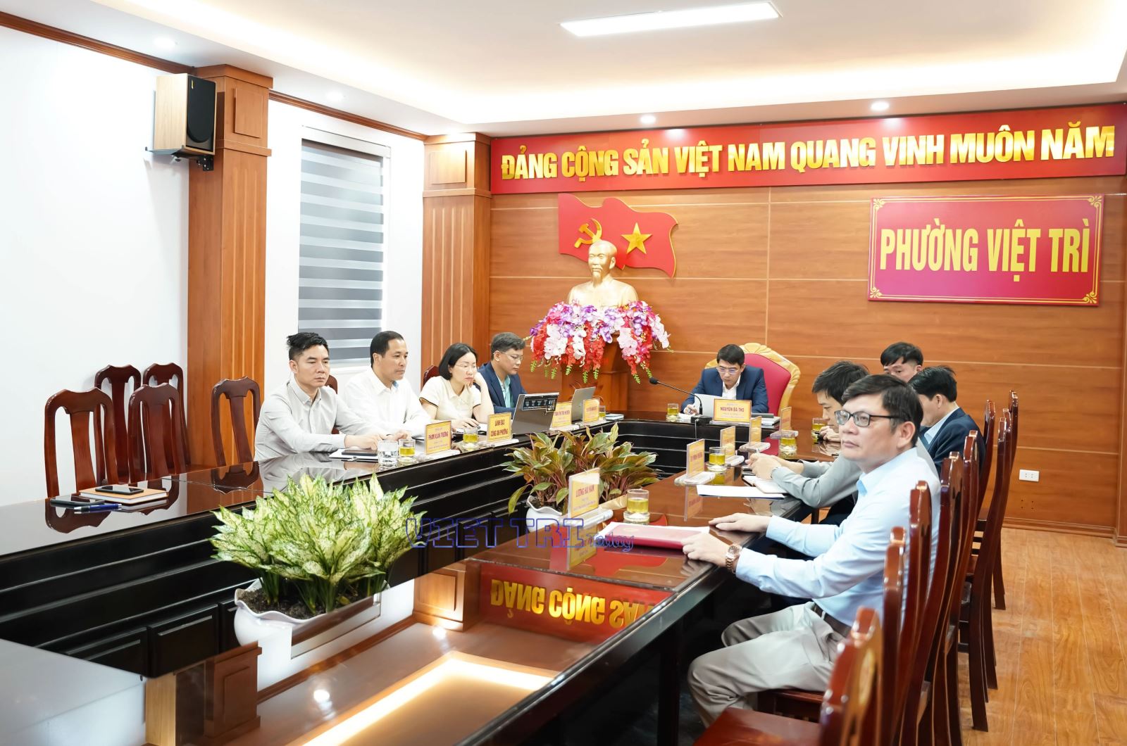 Tham gia hội nghị có các đồng chí trong Ban chỉ đạo công tác bầu cử; Ủy ban Bầu cử phường; lãnh đạo Ủy ban Mặt trận tổ quốc; Công chức trực tiếp tham mưu công tác bầu cử phường Việt Trì. Đồng chí Nguyễn Bá Thọ - Phó Bí thư Đảng ủy, Chủ tịch UBND phường chủ trì hội nghị.