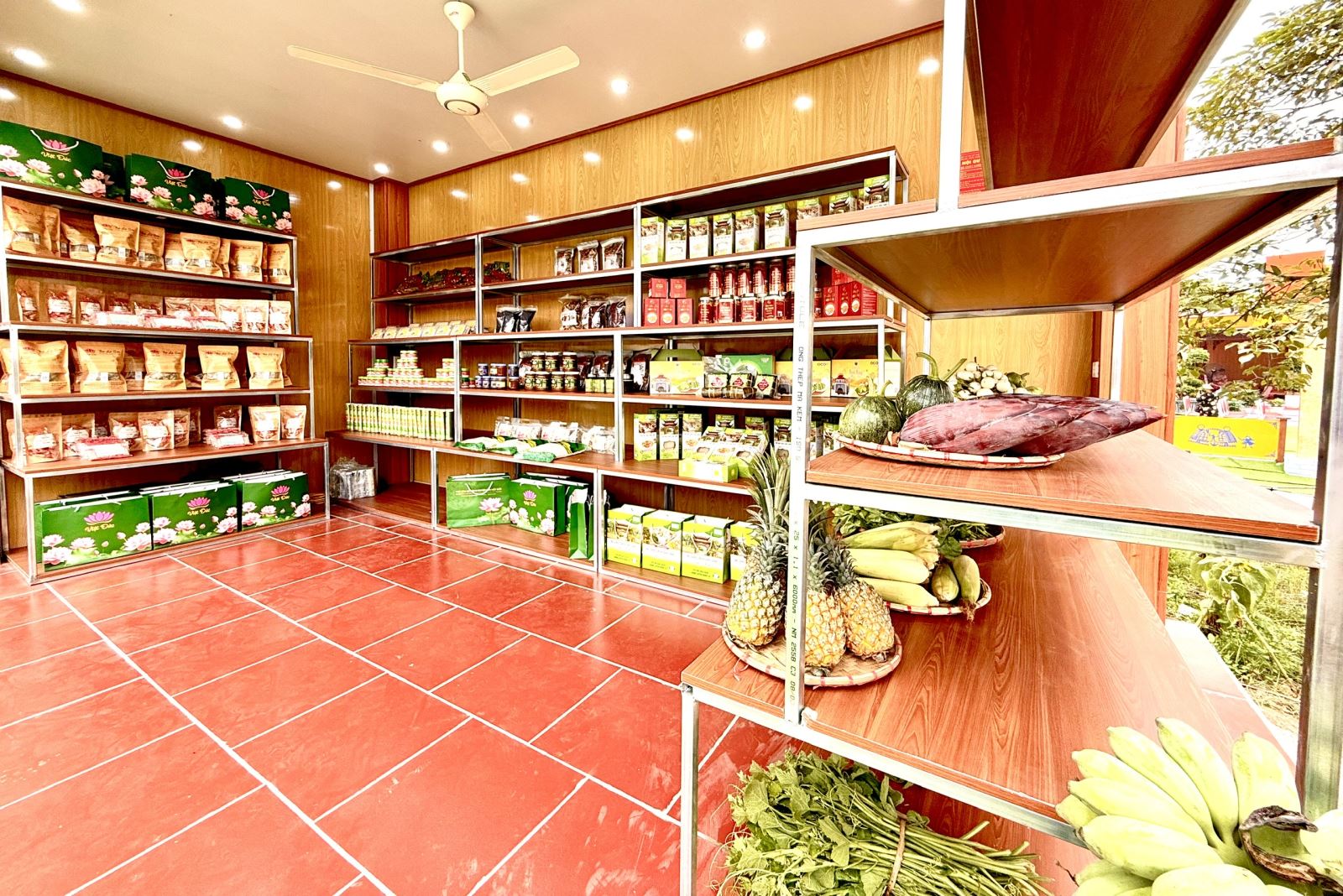 Bên cạnh đó, khu gian trưng bày sản phẩm là nơi giới thiệu các sản phẩm OCOP, nông sản và những sản phẩm đặc trưng của các địa phương trong cụm. Đây không chỉ là nơi quảng bá sản vật địa phương mà còn góp phần xúc tiến thương mại, thúc đẩy phát triển du lịch và kinh tế địa phương.