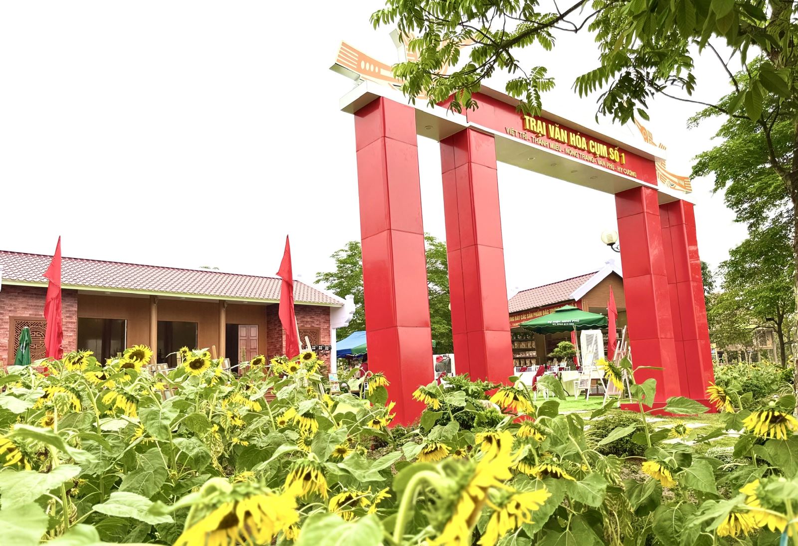 Tổng thể trại được bố trí hài hòa gồm cổng trại, khu nhà chính, khu sân khấu và khu trưng bày sản phẩm đặc trưng của địa phương, tạo nên một không gian văn hóa vừa trang trọng, vừa thân thiện và hấp dẫn đối với du khách.