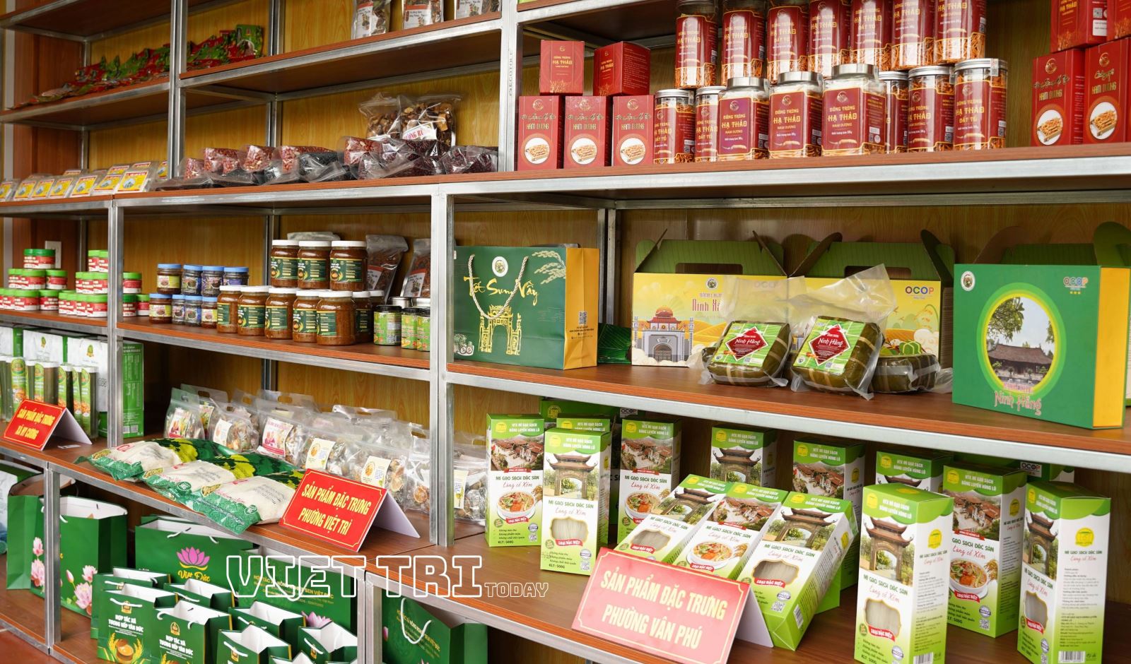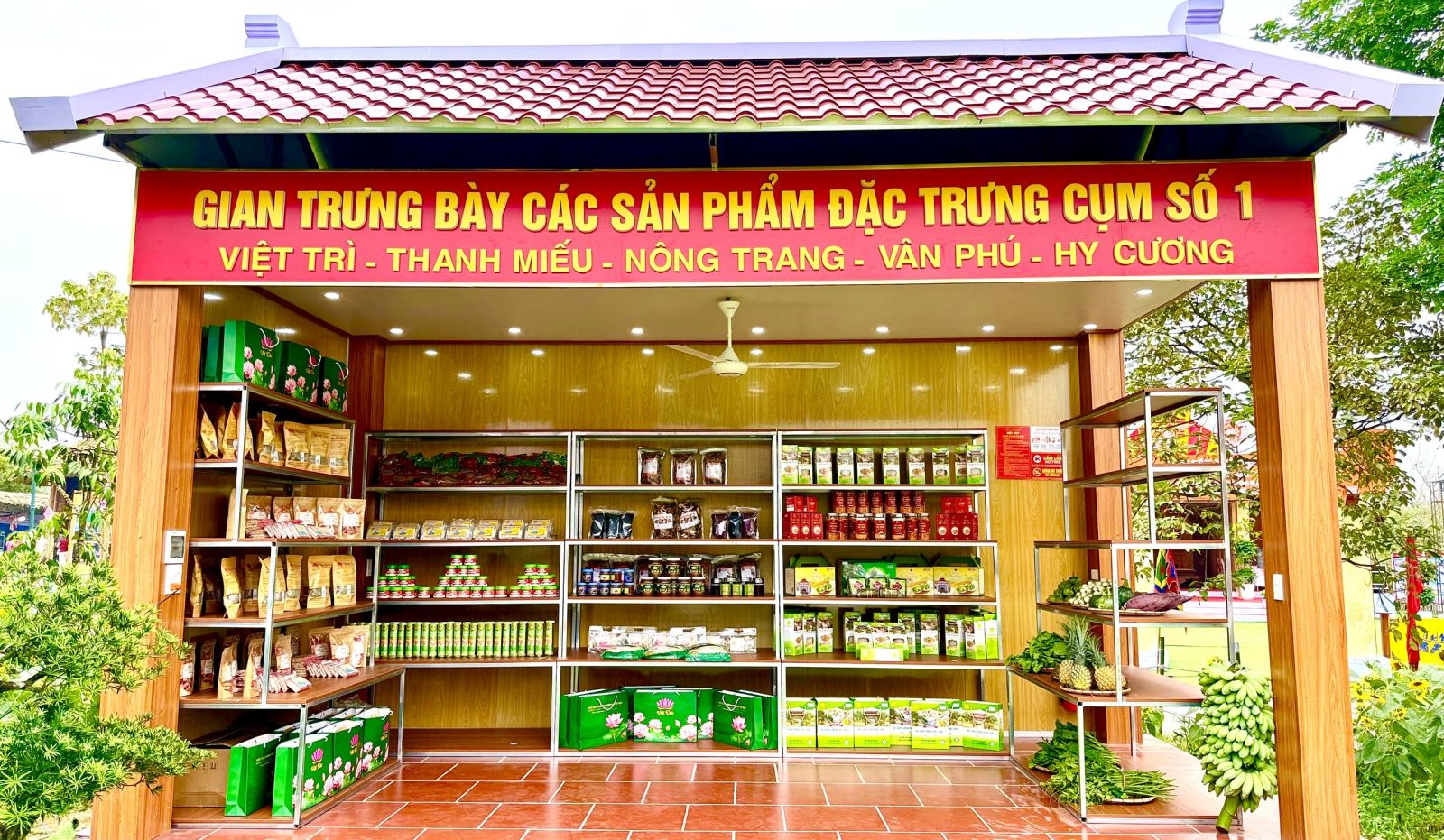 Tham gia trưng bày tại gian hàng của Hội trại văn hóa Cụm số 01, gồm các đơn vị: phường Việt Trì, Nông Trang, Thanh Miếu, Vân Phú và xã Hy Cương. Mỗi đơn vị đều có những sản phẩm đặc trưng riêng của địa phương đã được công nhận là sản phẩm Ocop như Tương Tân Đức, Mật ong Nhãn Trưng Vương (Việt Trì); Bánh chưng Ninh Hằng, Mỳ gạo Hùng Lô, Đông trùng hạ thảo Nam Dương (Vân Phú); Thịt chua Bảo Vinh Food (Hy Cương)… Bên cạnh đó là những sản phẩm nông sản như Trà lá sen, Kẹo lạc, Gạo ST 25… đều là những sản phảm nông sản truyền thống của địa phương.