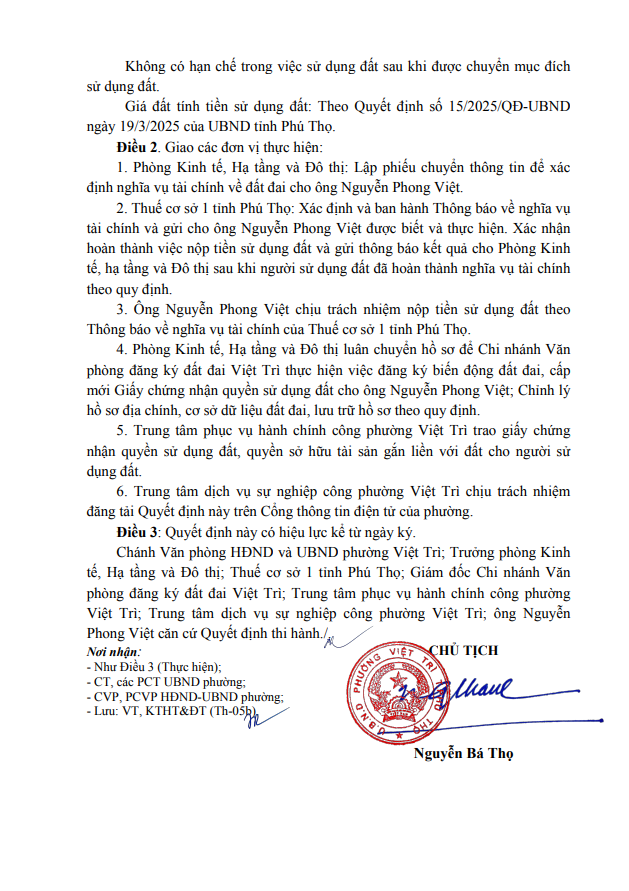 Quyết định về việc cho phép chuyển mục đích sử dụng đất