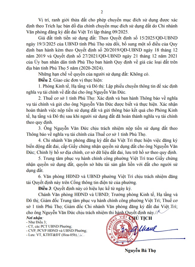Quyết định về việc cho phép chuyển mục đích sử dụng đất hộ ông Nguyễn Văn Đức