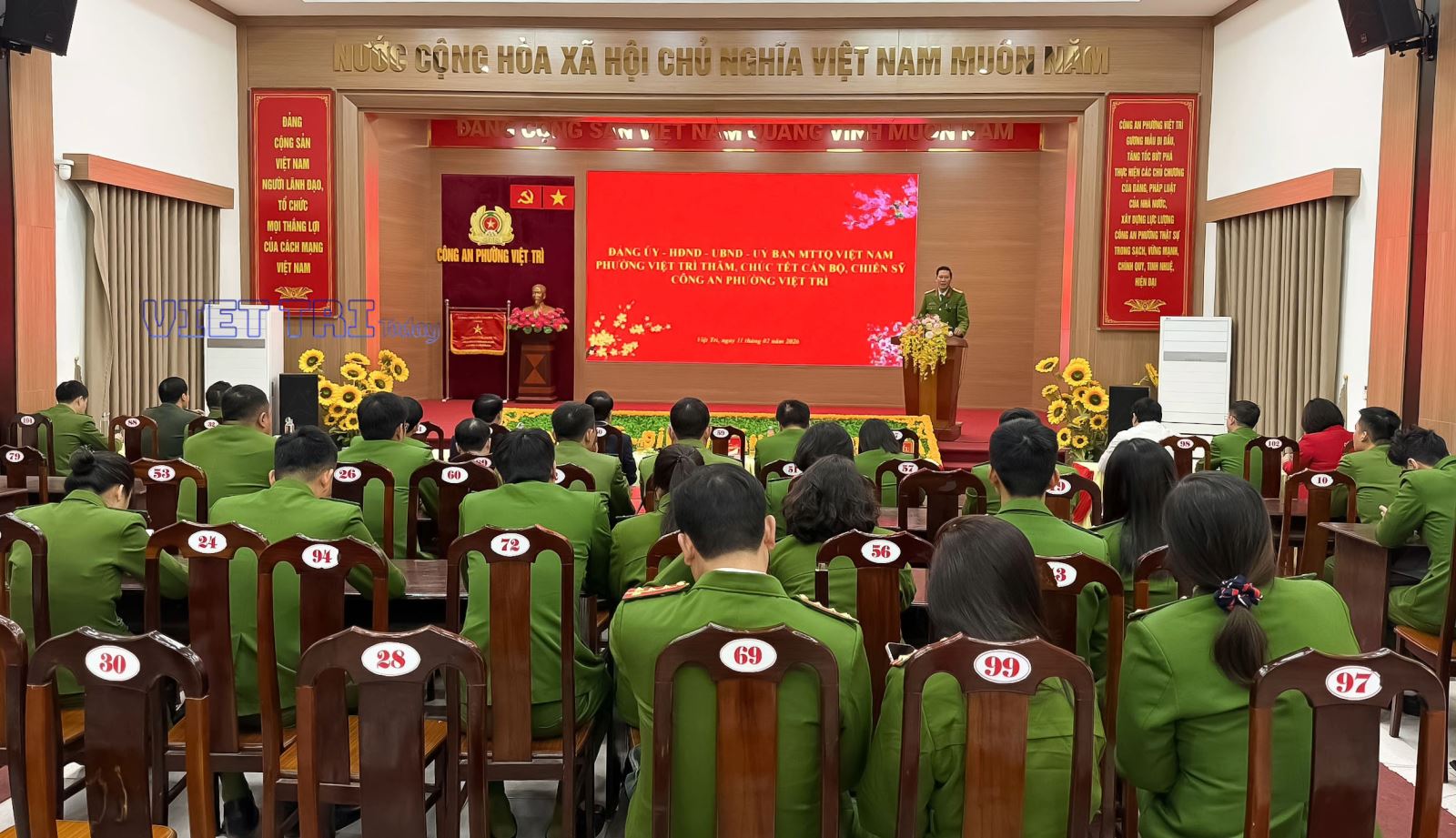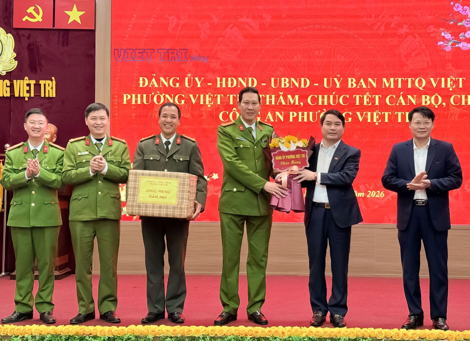 Đến thăm hỏi và động viên lực lượng Công an phường Việt Trì, đồng chí Nguyễn Văn Đức - Tỉnh ủy viên, Bí thư Đảng ủy, Chủ tịch HĐND phường đã ghi nhận, biểu dương tinh thần trách nhiệm, sự chủ động xây dựng và triển khai các phương án bảo đảm an ninh trật tự, an toàn xã hội trên địa bàn trước, trong và sau Tết. Đồng chí nhấn mạnh, dịp Tết là thời điểm nhu cầu đi lại, vui chơi, giao thương của Nhân dân tăng cao, tiềm ẩn nhiều yếu tố phức tạp về an ninh trật tự; do đó, lực lượng Công an cần tiếp tục nêu cao tinh thần cảnh giác, trực 24/24 giờ, kịp thời xử lý các tình huống phát sinh, không để bị động, bất ngờ. Đồng chí Bí thư Đảng ủy mong muốn lực lượng Công an phường tiếp tục phát huy truyền thống, giữ vững kỷ luật, kỷ cương, hoàn thành tốt nhiệm vụ được giao, góp phần để Nhân dân đón Tết vui tươi, an toàn, tiết kiệm.