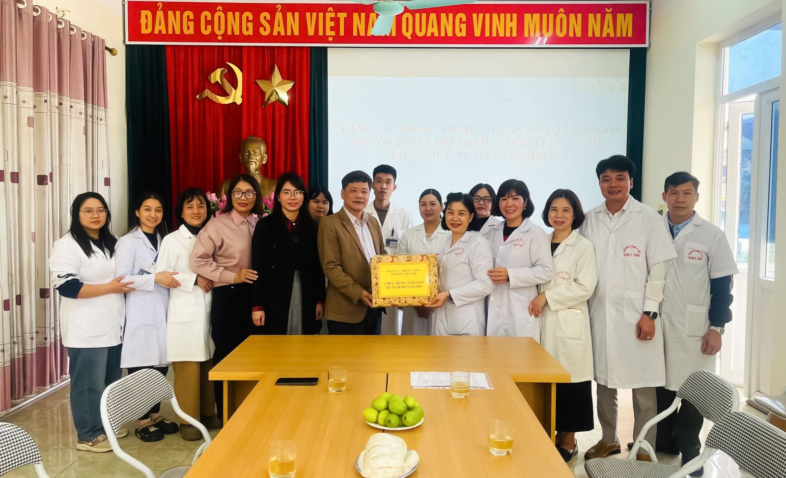 Tại đơn vị Trạm y tế, đồng chí Nguyễn Văn Biết – Phó Chủ tịch UBND phường ghi nhận những nỗ lực không ngừng nghỉ của đội ngũ cán bộ, nhân viên y tế đã luôn sẵn sàng phục vụ vì sức khỏe Nhân dân. Đồng chí đã gửi lời chúc Tết tốt đẹp nhất đến đội ngũ cán bộ, nhân viên y tế, động viên lực lượng phấn đấu hoàn thành tốt nhiệm vụ chăm sóc sức khỏe, khám chữa bệnh cho Nhân dân trong những ngày Tết cổ truyền.