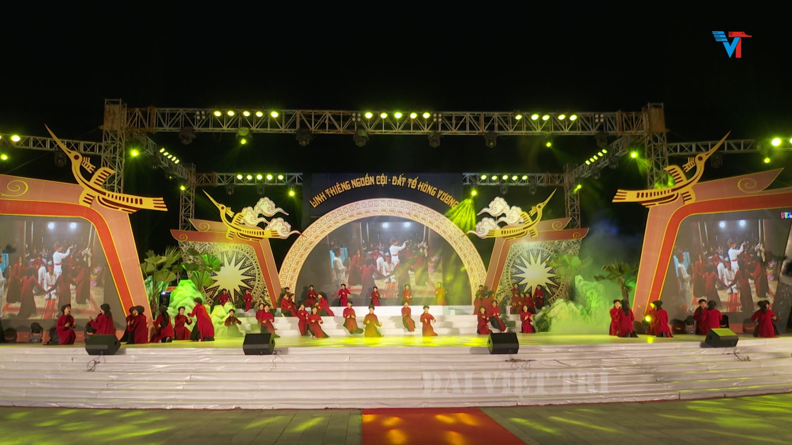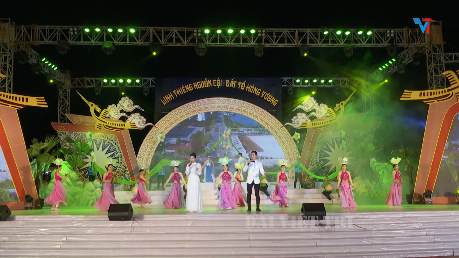 Với chủ đề “Linh thiêng nguồn cội – Đất Tổ Hùng Vương”, chương trình được dàn dựng theo hình thức ca, múa, nhạc dưới sự trình diễn của gần 200 nghệ sỹ. Mở đầu là các ca khúc “Công đức Vua Hùng”, “Linh thiêng một cõi tiên rồng”, “Lời ru Âu Lạc”... tái hiện lại hình ảnh về cha rồng, mẹ tiên, cảnh cuộc sống sinh hoạt từ thuở hồng hoang, cảnh lễ hội mùa xuân với các màn đánh trống đồng, dâng lễ vật, rước kiệu, hội vật, hát Xoan, con Lạc cháu Hồng cùng hành hương về dự giỗ Tổ Hùng Vương - Lễ hội Đền Hùng. Tiếp đó là phần diễn xướng văn hóa đặc trưng của miền đất Tổ như: Hát văn “Dâng văn giỗ Tổ Vua Hùng” và Hát Xoan "Bỏ bộ".